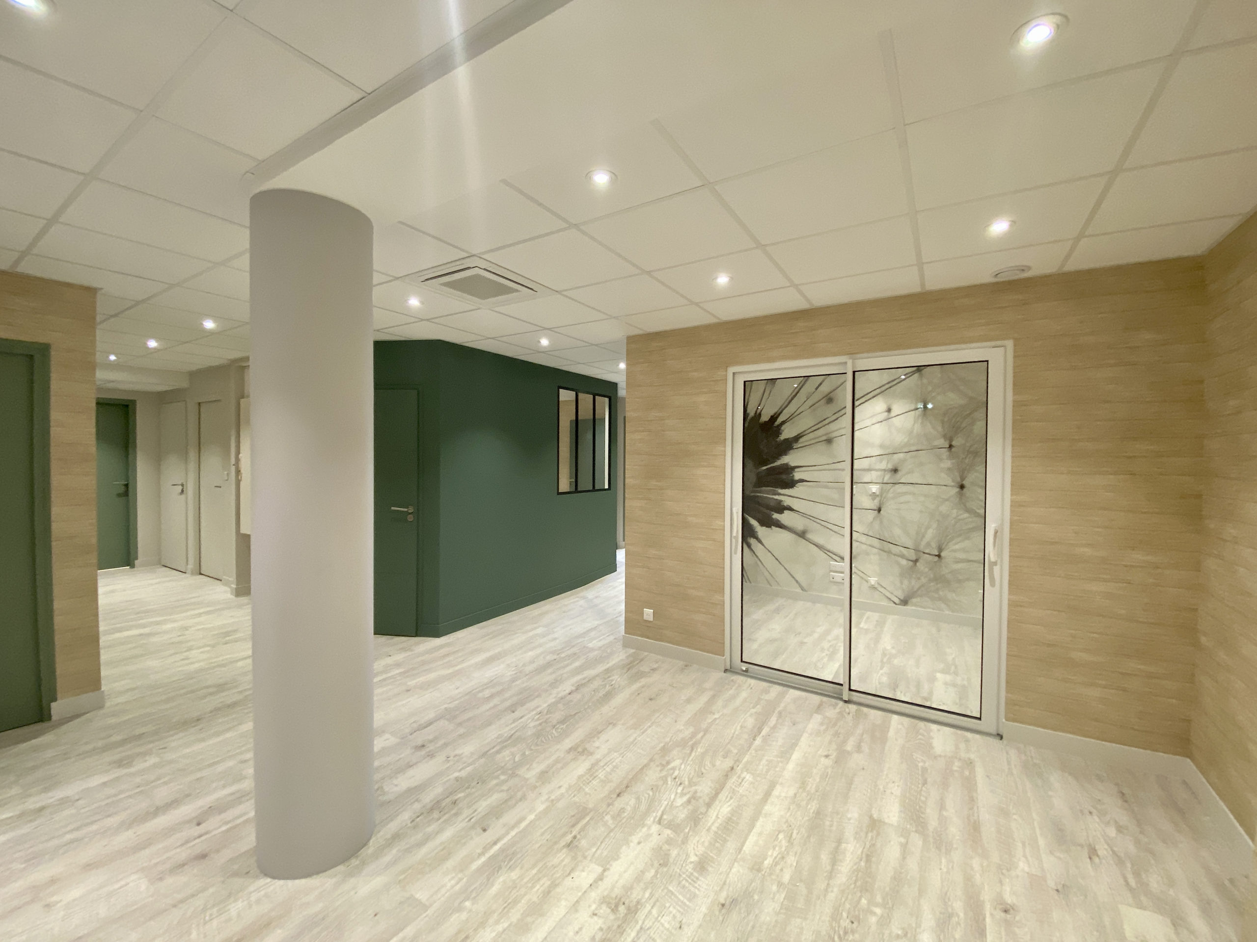 Ambiance douce et chaleureuse pour ce local brut situé aux Ponts de Cé. MIINT a sélectionné les différents matériaux et proposé une palette de couleurs dans le style nature/industriel souhaité par le client. Les revêtements panoramiques ont permis de compenser l’absence de fenêtres dans les parties communes et d’apporter de la « profondeur » à ce local professionnel.
